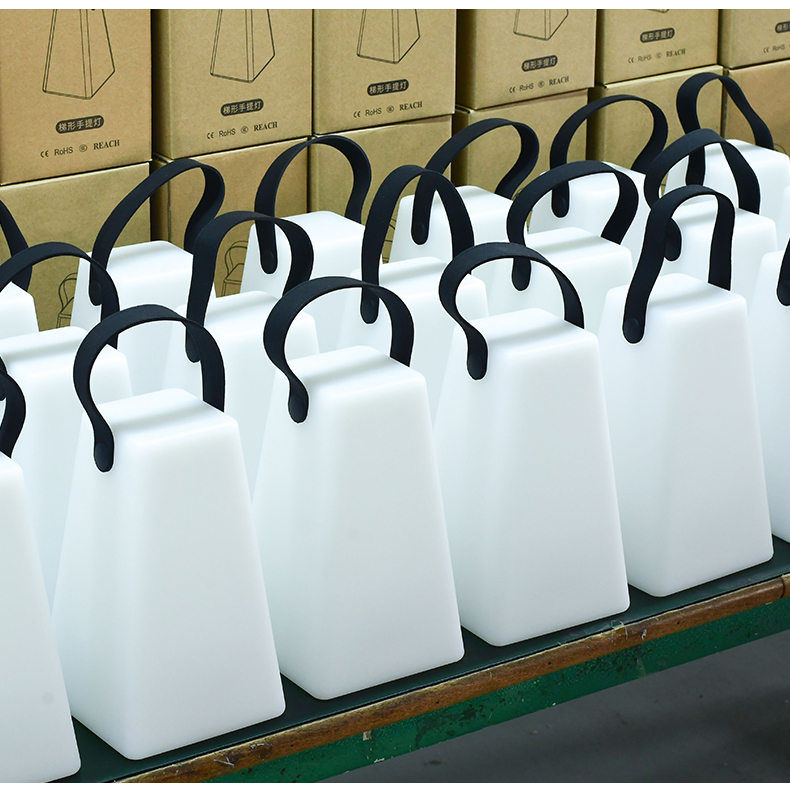 Lantern table lamp is made of sturdy Polyethylene (PE) and equipped with a practical carrying handle that hangs delightfully on patios, in the outdoor gardens or out in the camping tent.